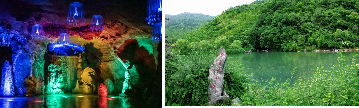 桐庐垂云通天河: 垂云通天河,是一条岩溶地下暗河,由于亿万年前的地壳变动及火山爆发等因素,使景区所在地理范围形成了典型的喀斯特岩溶地貌。垂云通天河全长4.5公里,河道落差 380米,总面积为8万余平方米。河道内岩溶地貌发育良好,地下水源丰沛,水质甘澄,空气清新,终年流水潺潺,河道曲折幽深,或成潭、或成泊、或成瀑激流浅滩,变幻无穷,使人流连忘返。