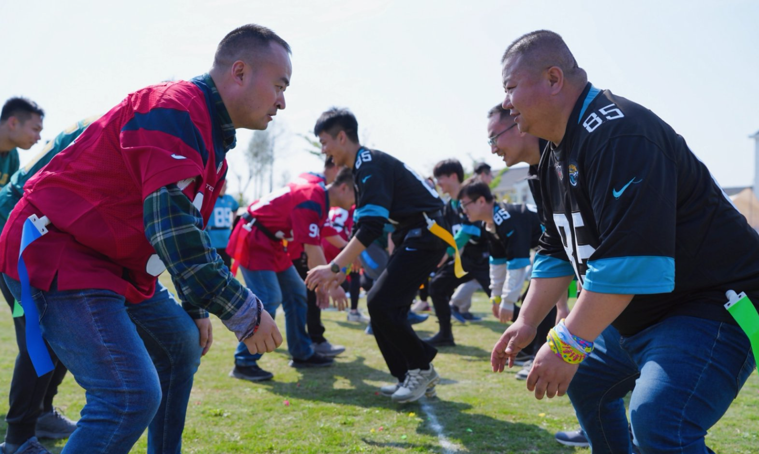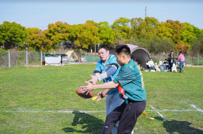 腰旗橄榄球因为无激烈身体对抗、规则简单,非常适合和无运动基础人群参与, 逐渐成为目前社群交友、企业团建、亲子互动的首选项目之一。