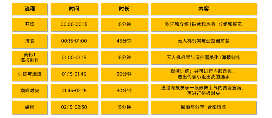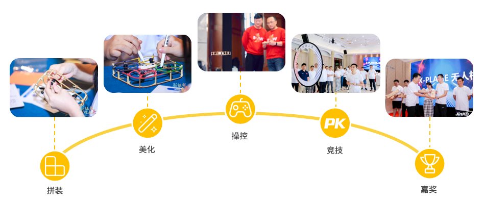 队长、机架机械师、遥控器机械师、美化师、飞手等,团队成员需要划分为不同的角色,进行合理的分工,相互协作,才能在有限的时间内,让自己的小组作好最佳准备,以迎接即将到来的刺激比赛。