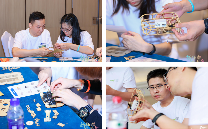 活动流程:拼装 大家通过分工协作,把一块块木质零件,用榫卯结构组合起来,再搭配各式电子组件,就拼装成一套科技感满满的无人机。